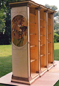 Made from Sycamore and walnut with a marquetry panel at each end.The interior is of a framed and panelled construction with fully adjustable shelving, all in sycamore.